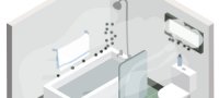 В ходе декоративной отделки стен и потолка закладываются провода в гофрированных изоляционных трубках, при необходимости сооружается вентиляционный канал и подгоняется размер отверстия под вентилятор. Подключение проводки и установка выключателей также проводится на этом этапе.