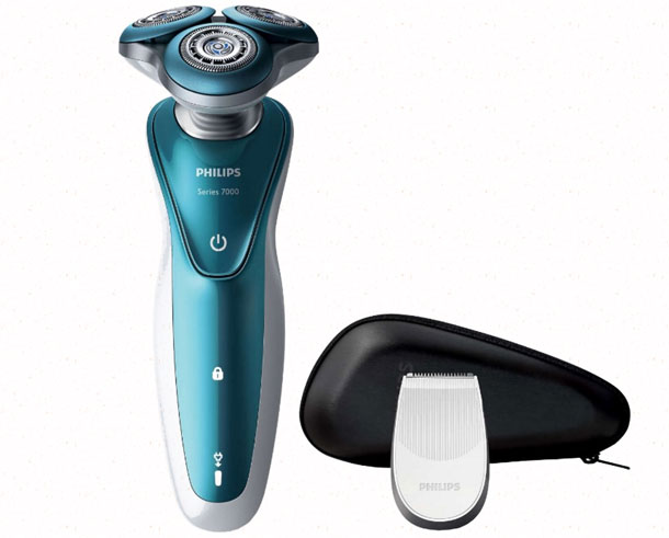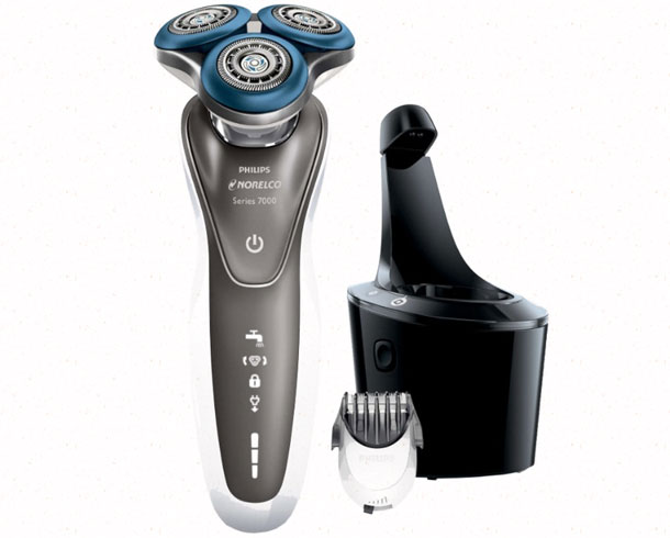 - В 2017 году миф о том, что роторные электробритвы не подходят для чувствительной кожи, разрушила компания Philips, выпустив модель S7720 Shaver. Девайс с плавающими в разных направлениях головками, обеспечивает чистое и в то же время безопасное срезание волосков под корень. Распознавание типа растительности позволяет убирать самые короткие и жесткие щетинки. Благодаря водонепроницаемому корпусу S7720 Shaver 7000 можно эксплуатировать в процессе принятия душа. Но главной фишкой стала система SmartClean. Вам нужно лишь вставить бритву лезвиями вниз в специальный блок и устройство само промоет их от остатков пены/геля и мельчайших волосков. Также чистящая станция осуществляет сушку, смазывание и, если требуется, зарядку. Стоимость подобного набора сравнительно невелика – в районе 270$. Но необходимость приобретать каждые три месяца новые моющие картриджи обойдутся мужчинам в кругленькую сумму. Впрочем, чистое бритье и здоровая кожа того стоят.