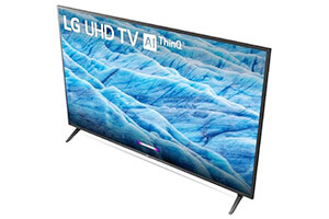 Он обладает качественным экраном с 4K разрешением и широкими углами обзора. Также довольно полезной особенностью последнего является наличие антибликового покрытия, спасающее общую картинку от засветов, предоставляя отличные ощущения от просмотра. Помимо этого, в комплекте можно обнаружить столь же стильный саундбар, предоставляющий качественное стереозвучание, общей мощностью в 12 Вт. Стоимость модели варьируется в зависимости от комплектации, но в среднем она достигает отметки в 80 000 рублей на сегодняшний день.