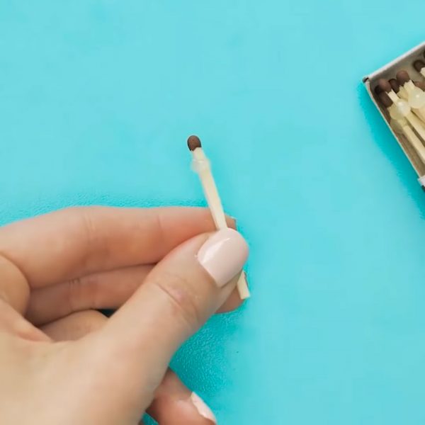 Шаг 1. Наносим каплю клея по периметру спички на расстоянии 0,5 см. от головки.