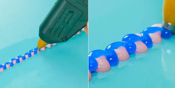 Шаг 3. Рисуем узоры вдоль нитки розового цвета и даём застыть.