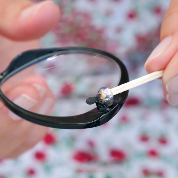Шаг 4. При необходимости произвести ремонт, к примеру отвалившейся дужки очков, зажигаем спичку.