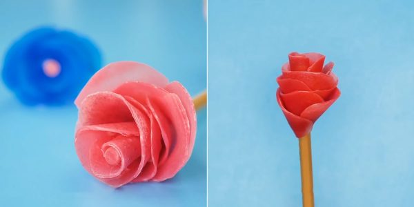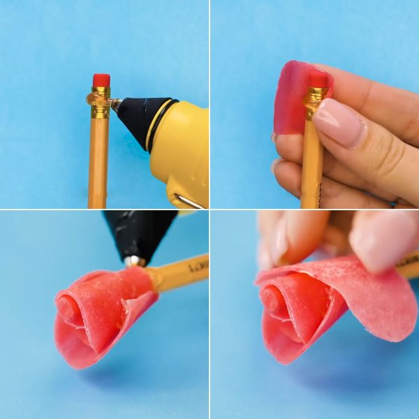 Шаг 6. Наносим клей на кончик карандаша и приклеиваем лепестки.